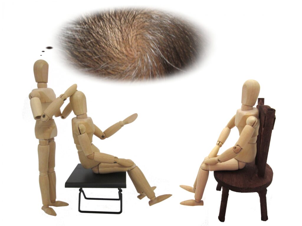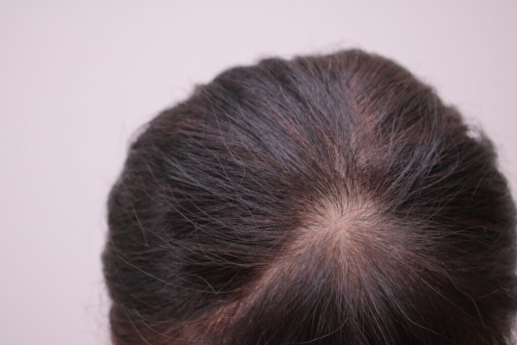 薄毛と白髪は異なる原因で起こりますが、頭頂部では同時に進行することがあります。毛髪が細くなりボリュームが減る中、白髪が目立つことで見た目の印象が強くなります。